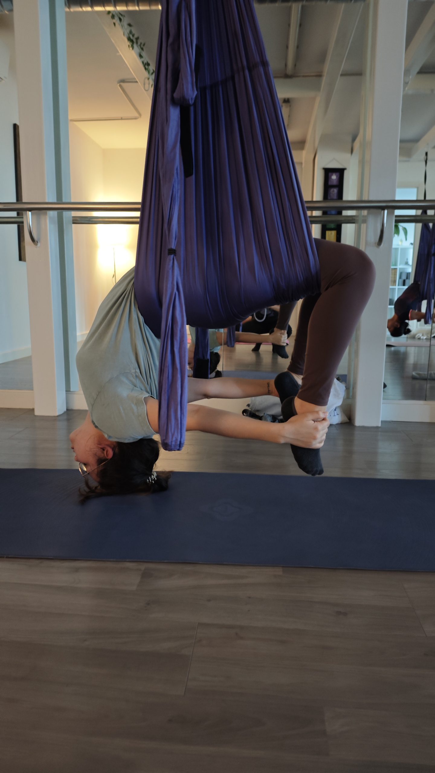 El columpio te sostiene, te ayuda a estirar mejor y sin dolor. Progreso real sin machacarte.